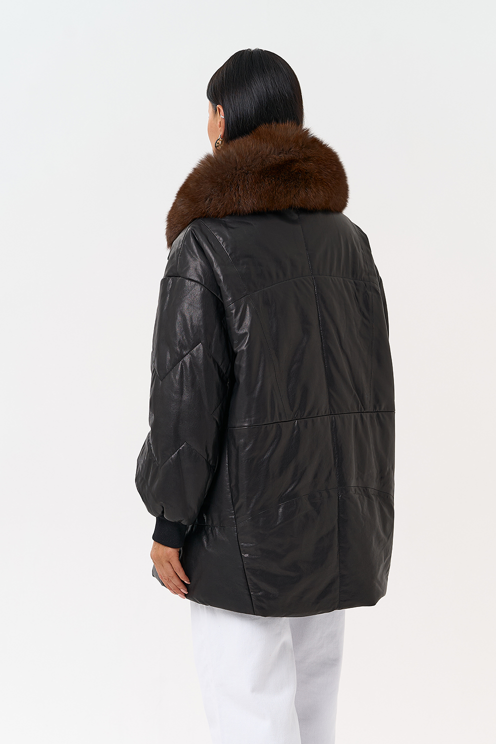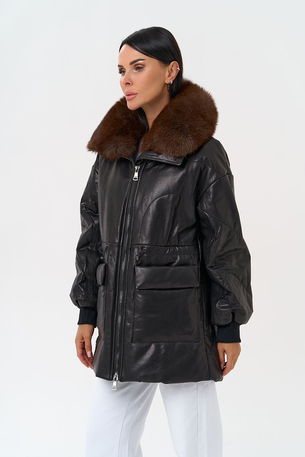 Утепленная кожаная куртка с песцом