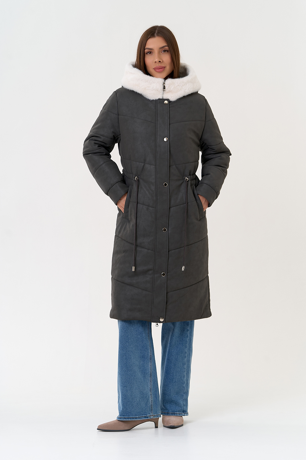 Отделка воротника - эко мех, цвет белый