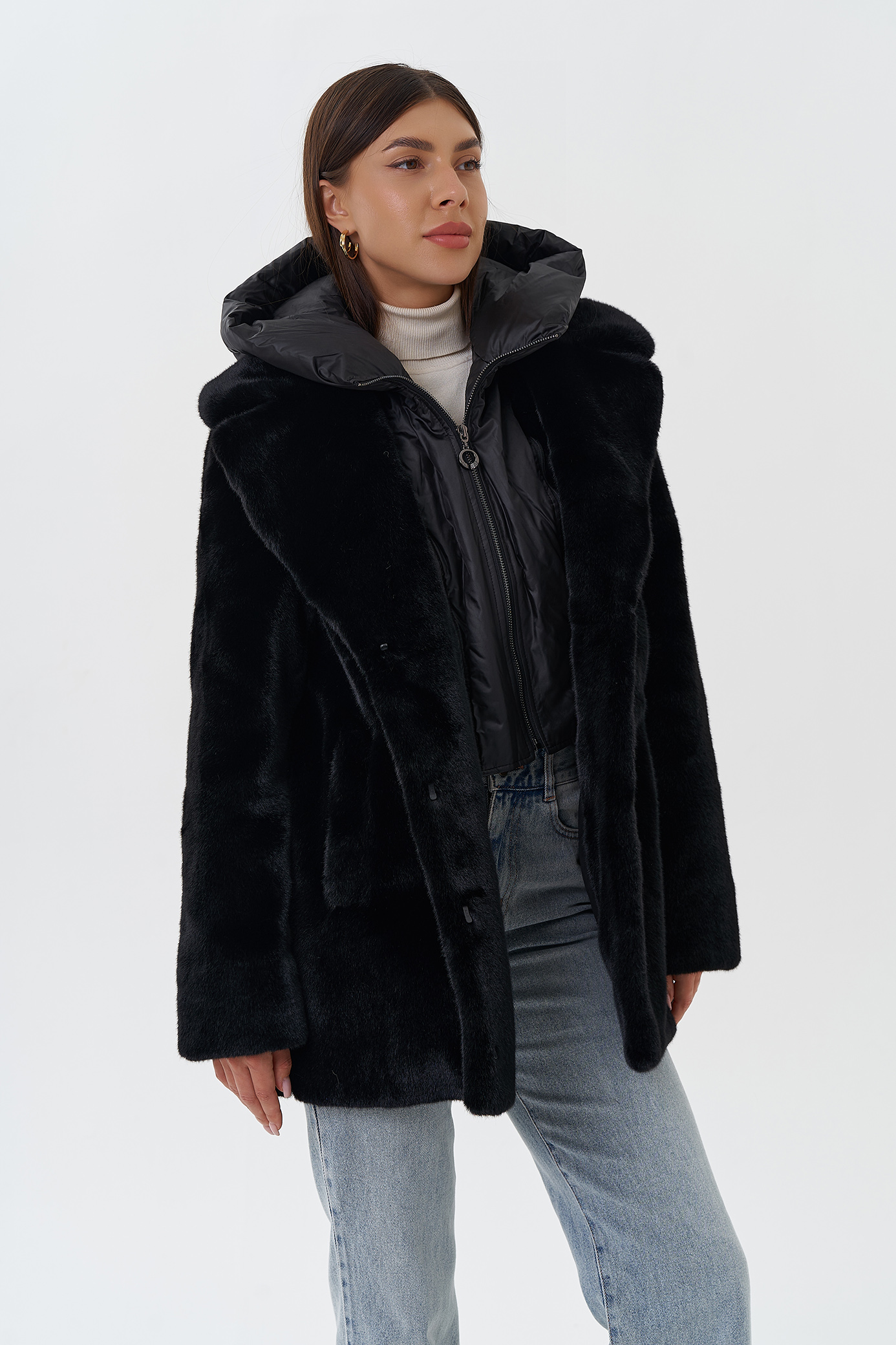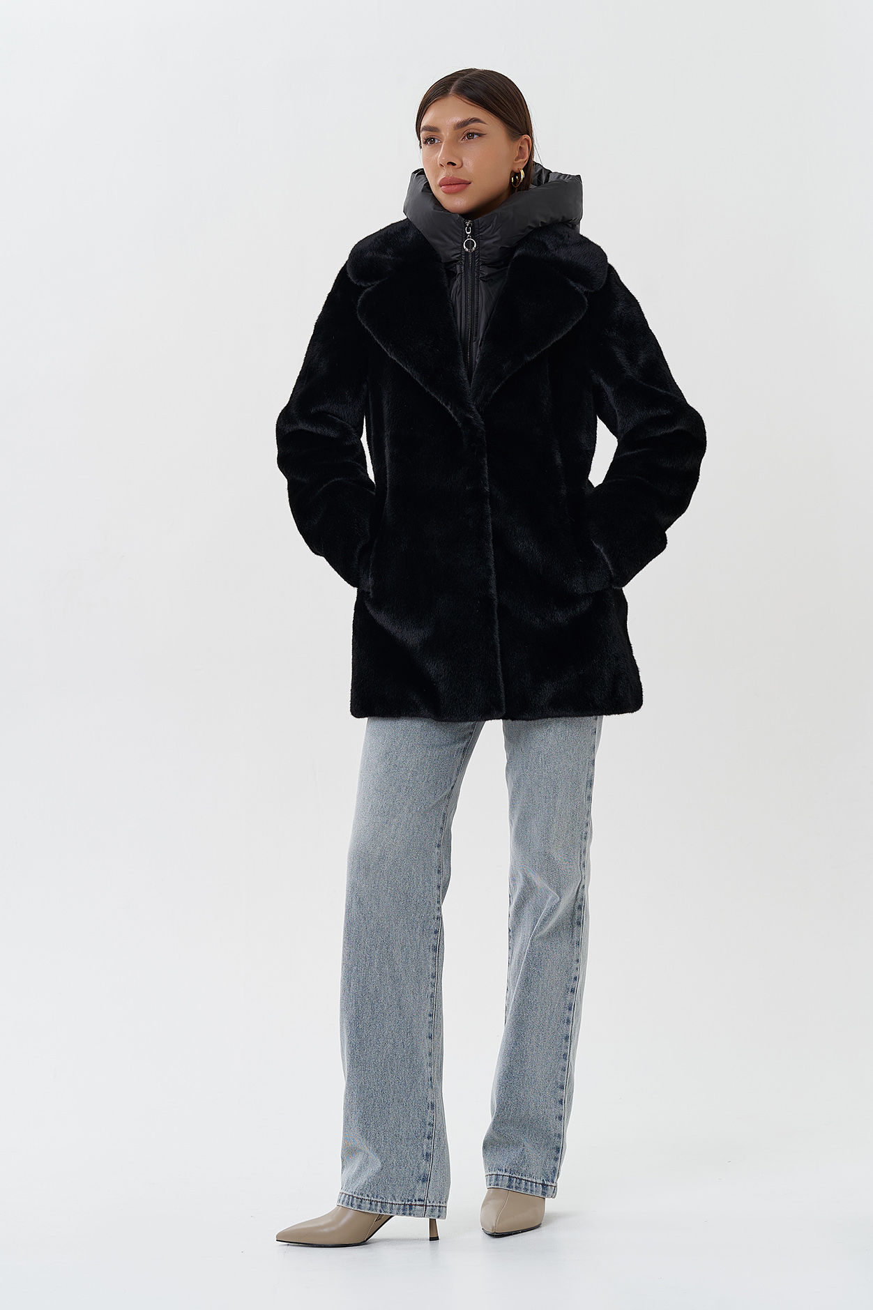 Вид ворота - капюшон съемный, английский воротник