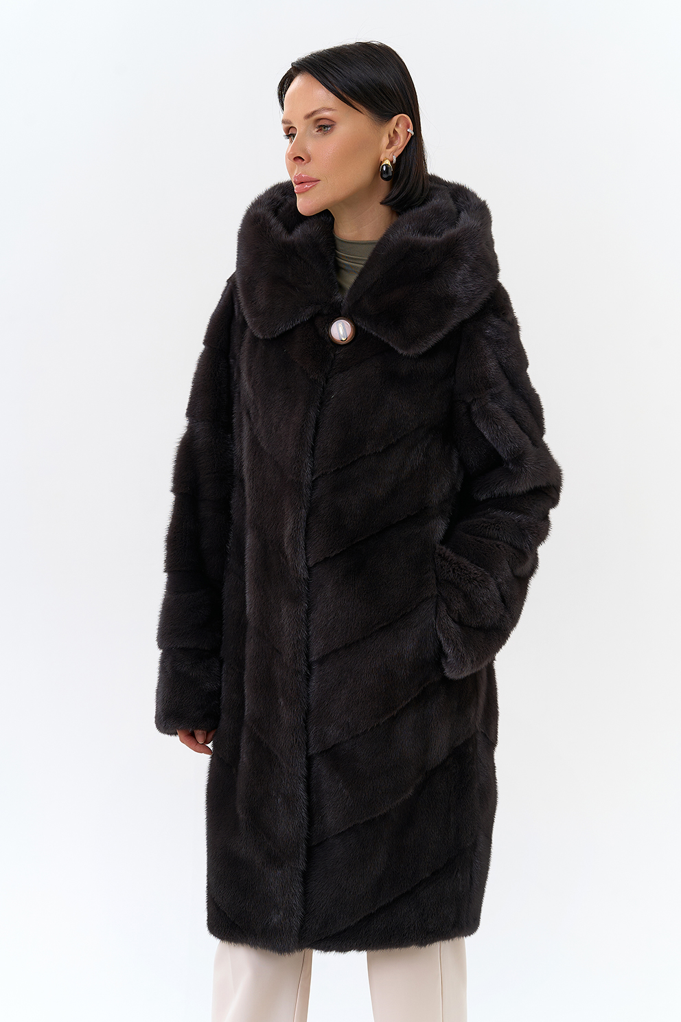 Норковая шуба в диагональном раскладе