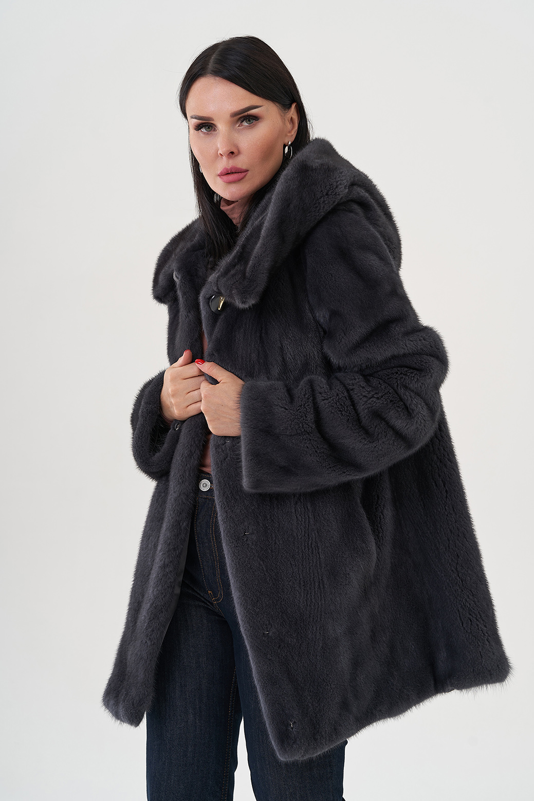 Шуба из норки с капюшоном